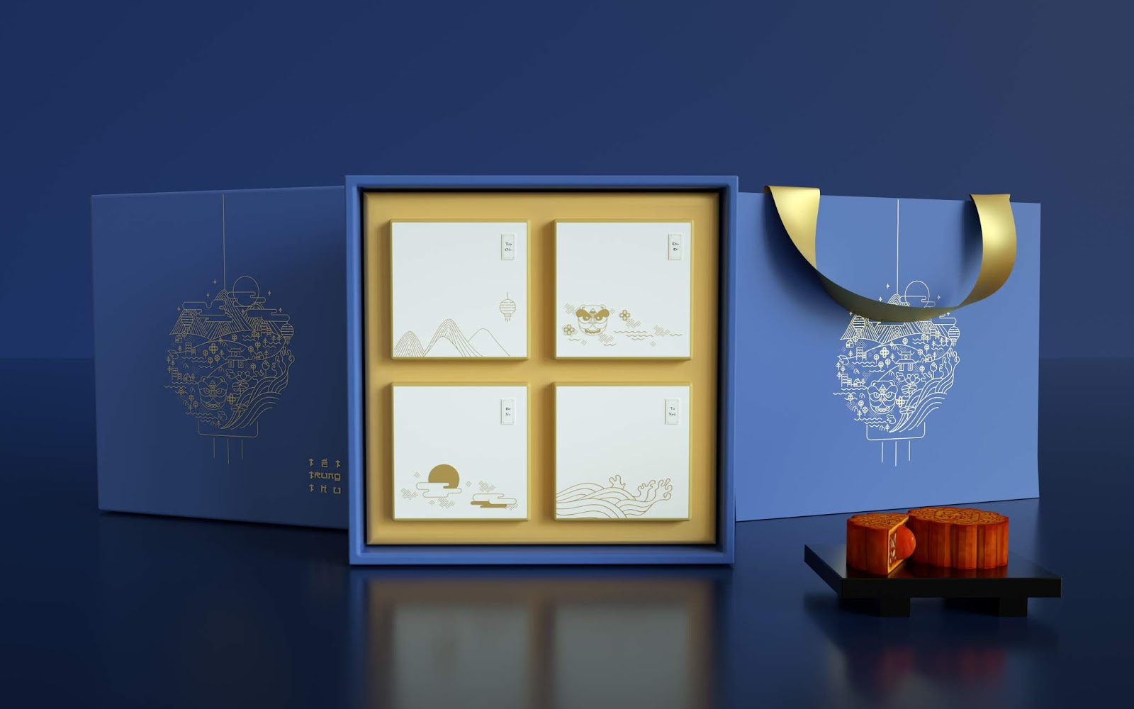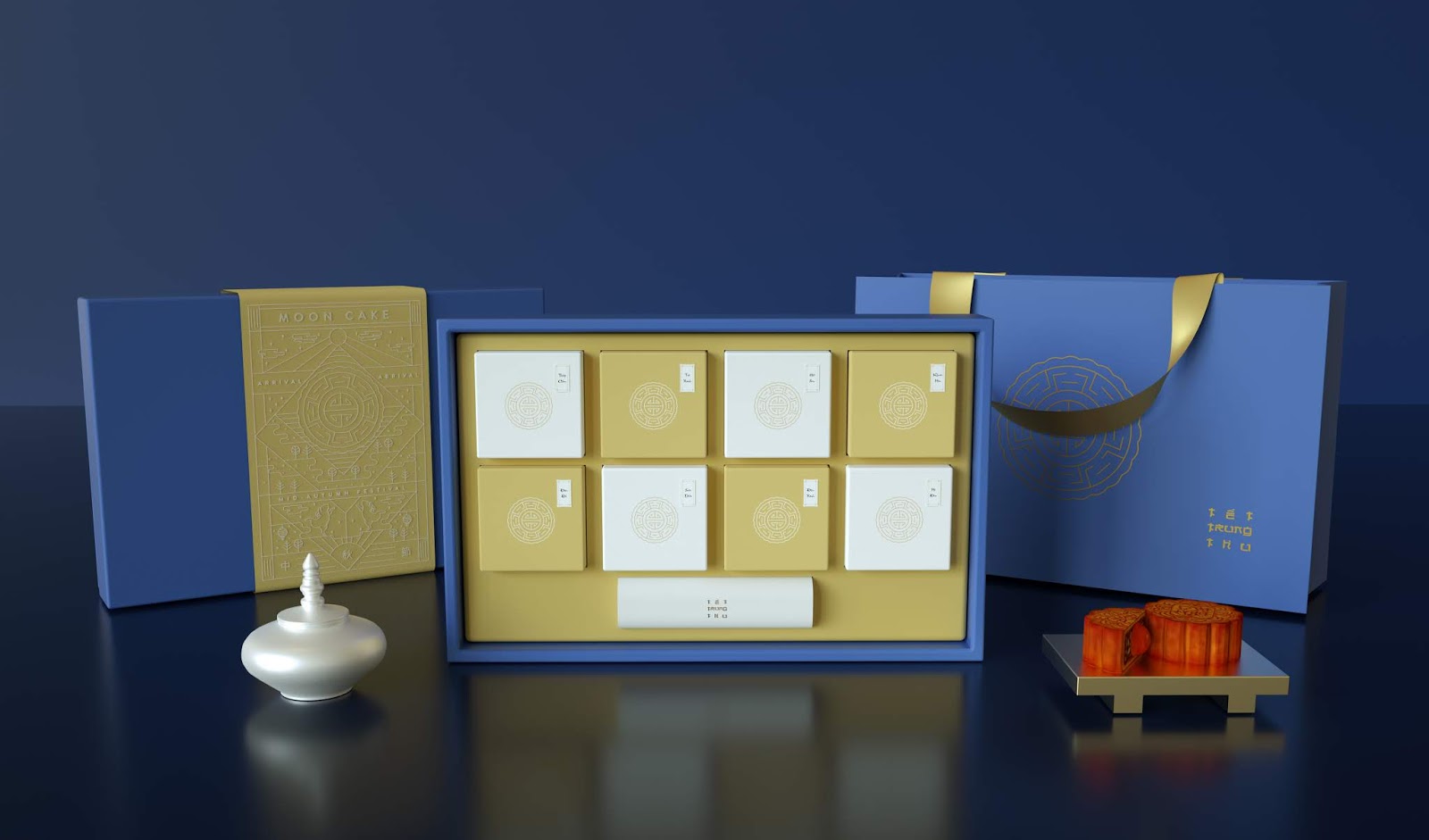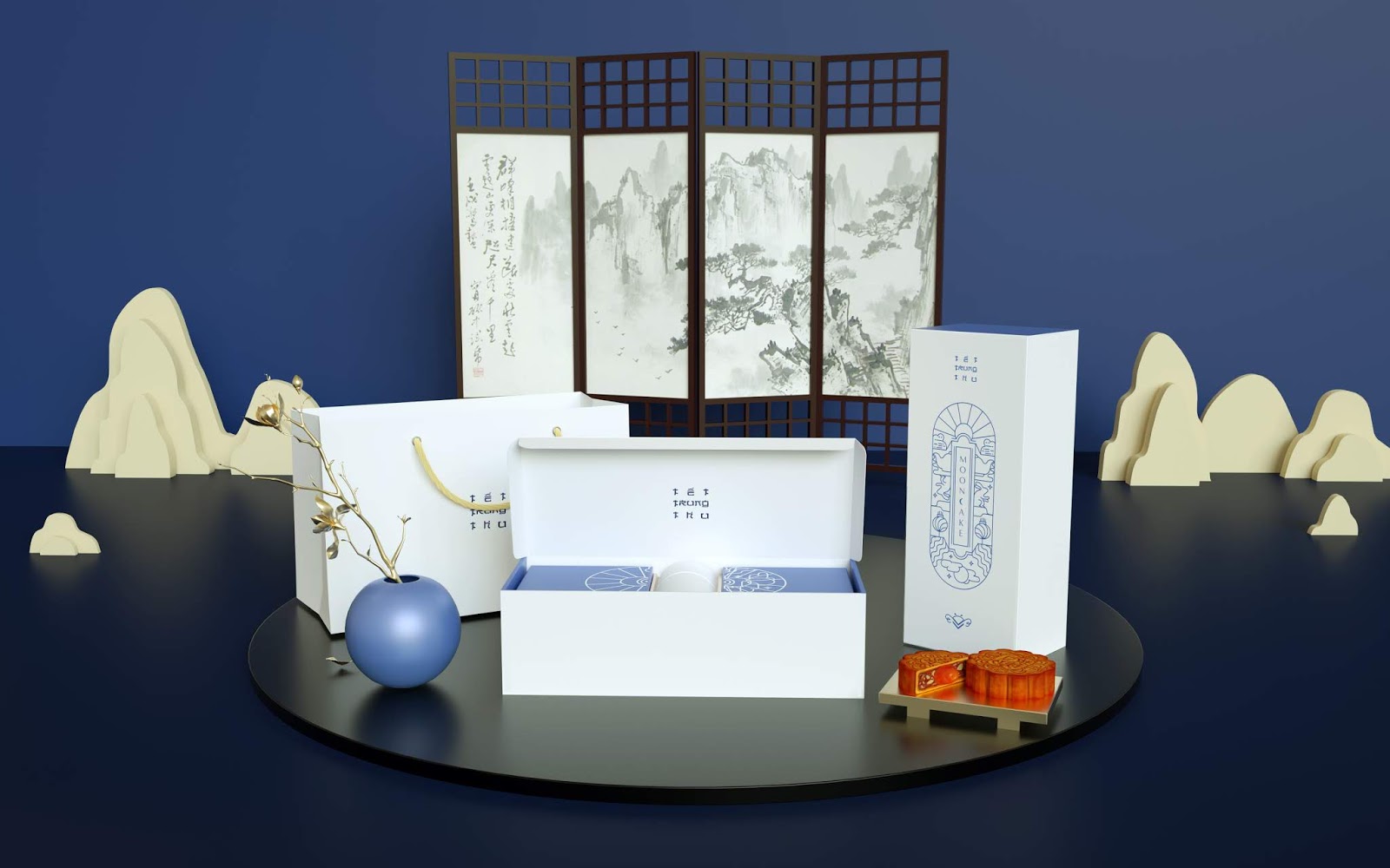 Với thiết kế ý tưởng là những truyền thuyết về trung thu như chị Hằng Nga, chú Cuội, thỏ ngoc... bao bì hộp carton dựa vào đó để thiết kế hộp đựng bánh trung thu.