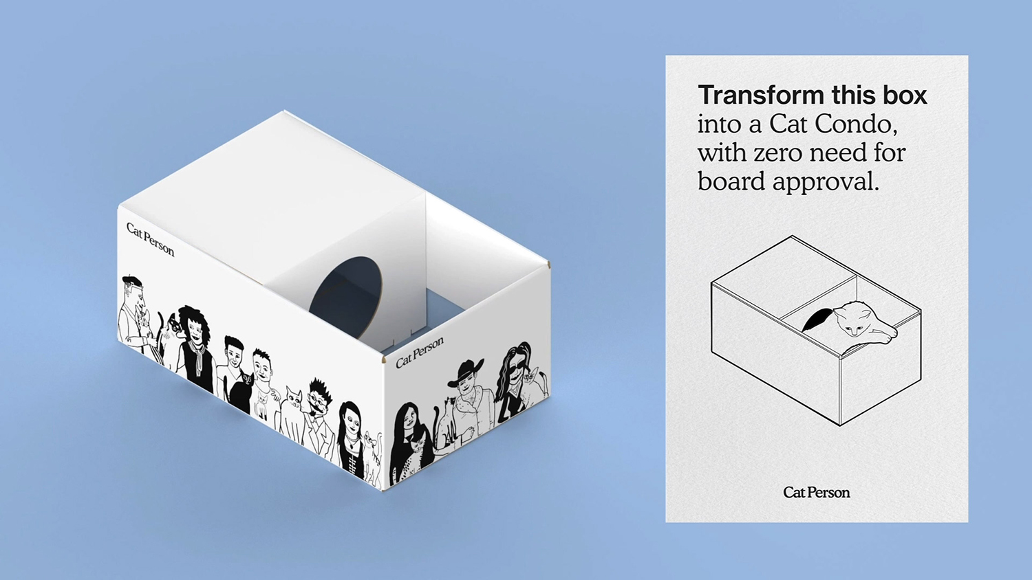 Cat Person là một thương hiệu mới dành cho những người chăm sóc và vận chuyển mèo. SLATE đã thiết kế các hộp carton để làm nổi bật nên những con mèo dễ thương của mọi người đồng thời củng cố tình đoàn kết và niềm tự hào là một phần của cộng đồng yêu những người yêu con vật dễ thương này.